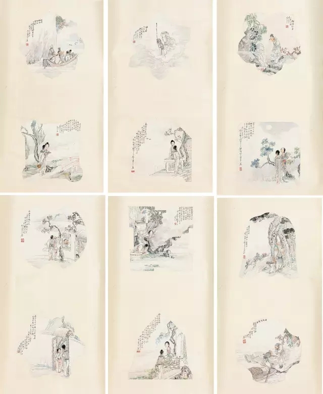 錢慧安(1833-1911) 人物故實圖六屏