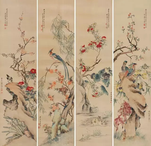 黃山壽、湯世澍 花鳥四屏