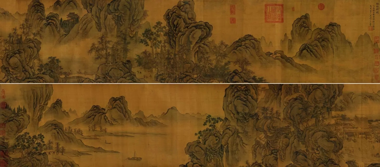 此《韻接荊關》手卷,是王翬早年的仿古巨跡。展閱全卷,既可以流連于王石谷純熟的筆墨技巧,其勾皴點染,“不覺亹亹布置如許”成竹在胸之自信,又似慢慢體會畫變從人煙稀少到鬧市紛紛,最后到溪山晚漁場景的轉換。似人生之起伏波瀾,極富有人生哲學。
