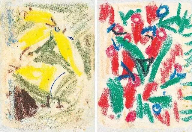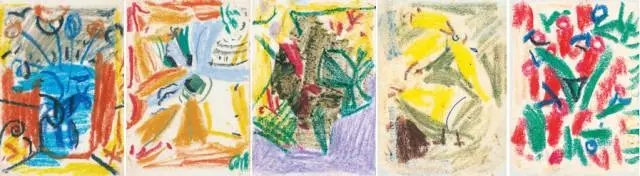 蠟彩這種獨(dú)特的“吐彩新工具”,為吳大羽提供了另一方廣闊天地,他尤其醉心研究其“書法藝術(shù)之神彩”。吳大羽以書法線性為主題,或輕擦,或厚涂,形成鮮明對比,達(dá)到濃麗鮮艷、沉著厚實(shí)的藝術(shù)效果。同時(shí),吳大羽自由掌控蠟彩的筆觸,線條的粗細(xì),直接進(jìn)行藝術(shù)造型,創(chuàng)造出高度概括的藝術(shù)形象。吳大羽用手中的蠟筆施色記錄抓住內(nèi)心的瞬間感受,再現(xiàn)了心靈感應(yīng),追求著藝術(shù)的純真,創(chuàng)造出一種稚拙的純美表現(xiàn)。吳大羽的這批蠟彩畫,對于后人研究抽象藝術(shù)和蠟彩畫顯得彌足珍貴。